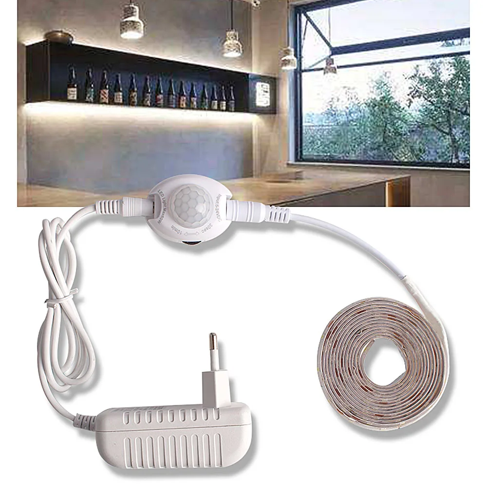 Горячая Распродажа, светодиодный светильник с датчиком движения, водонепроницаемая светодиодная лента Tira 220 В до 12 В, гибкая неоновая лента для включения/выключения 1 ~ 5 м, источник питания Ledstrip