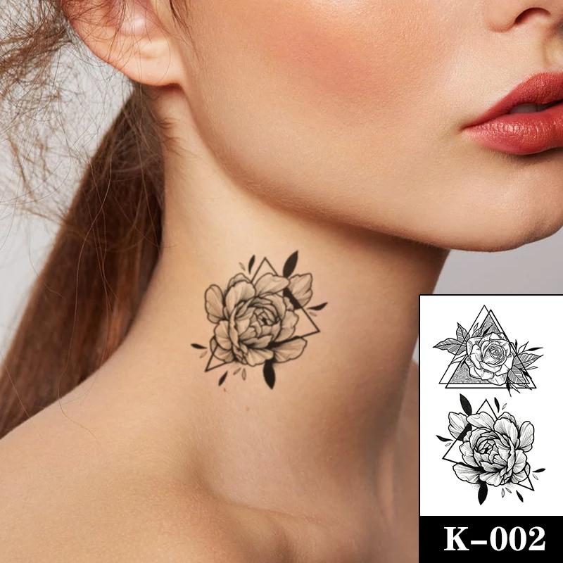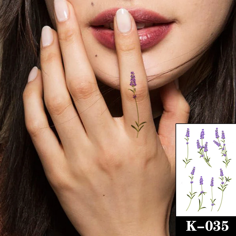 Акварель Лаванда временная татуировка наклейка Черная роза Геометрия водостойкая боди-арт палец поддельные татуировки флэш-татуировки для мужчин женщин