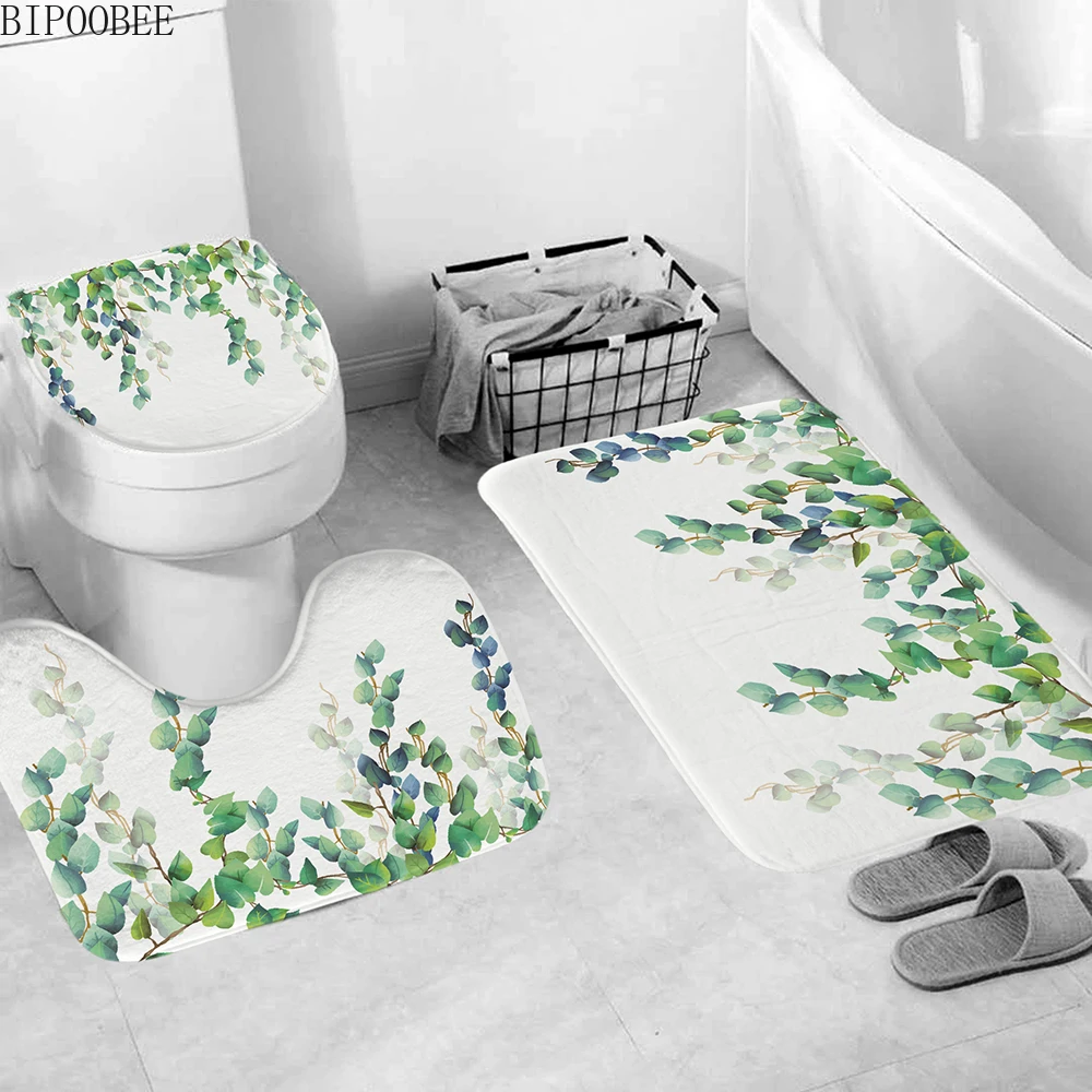 Шторка для ванной комнаты с принтом зеленых листьев, противоскользящая шторка из натуральных растений, коврик для ванной комнаты, шторка для душа