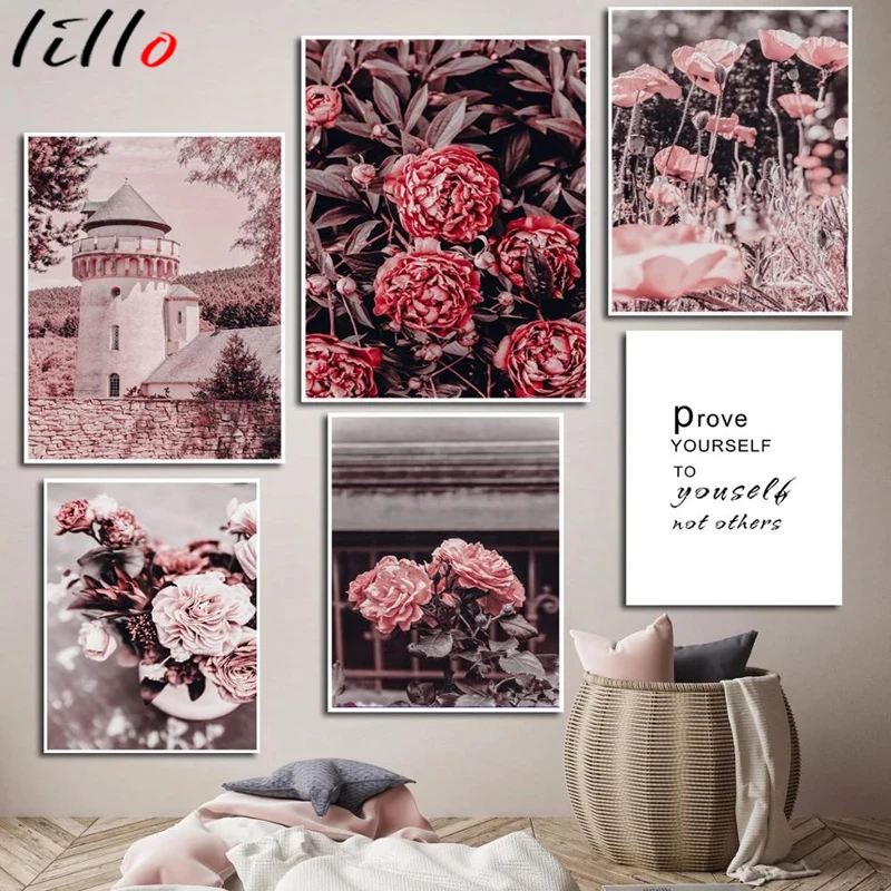Современный розовый цветок лак для ногтей модный постер с принтом р...