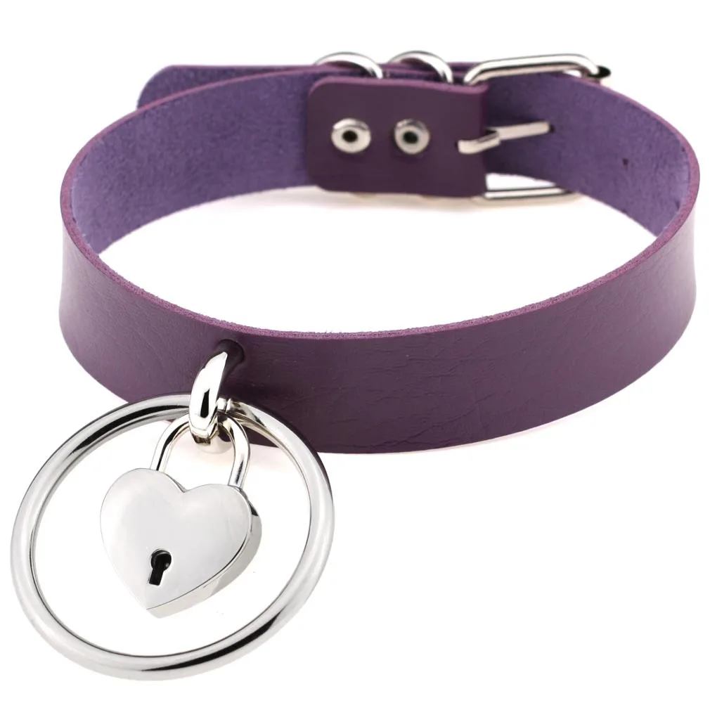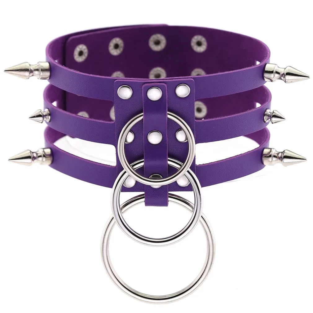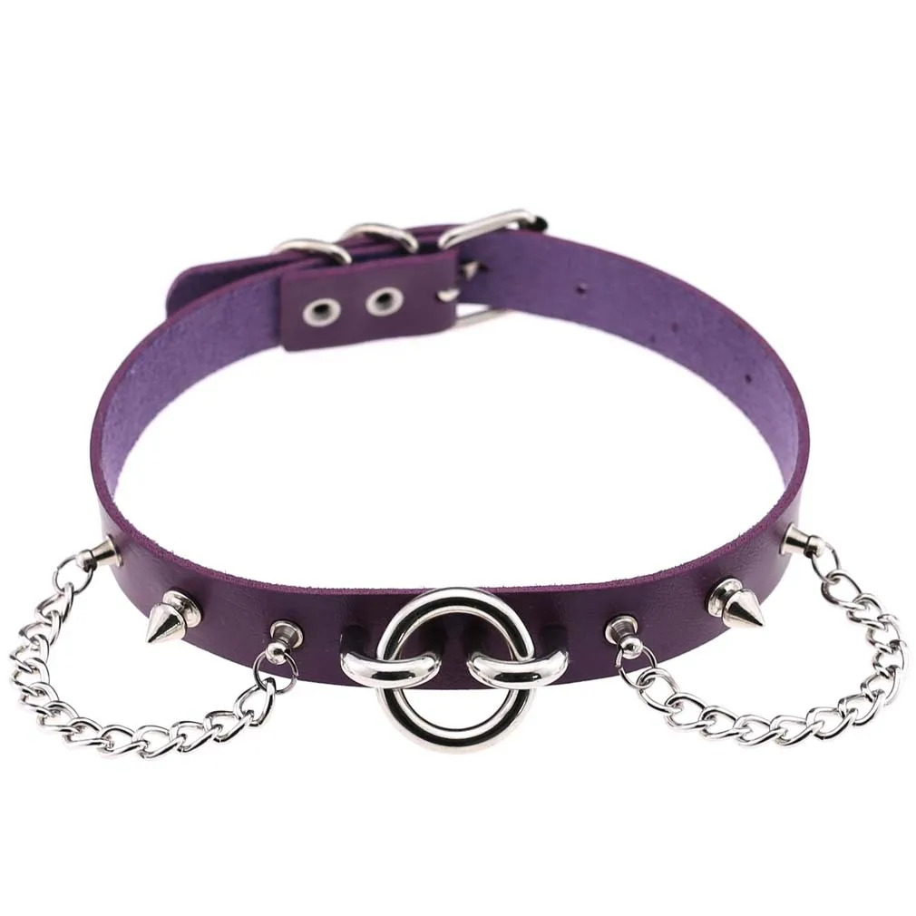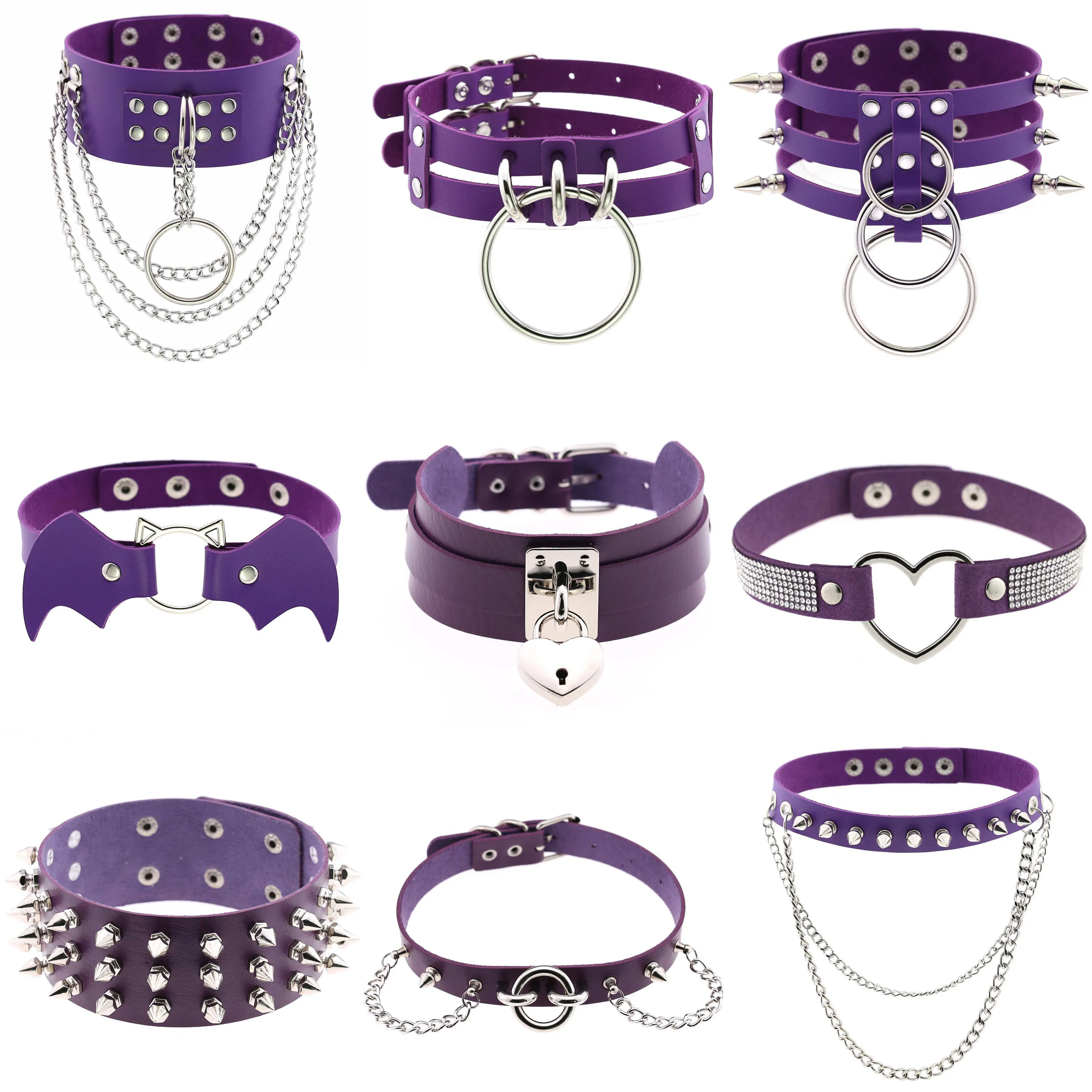 Панк-фиолетовый искусственная кожа с заклепками, женское ожерелье, асфиксия, нержавеющая сталь, серебряный цвет, цепи, связывание, шея, готические украшения