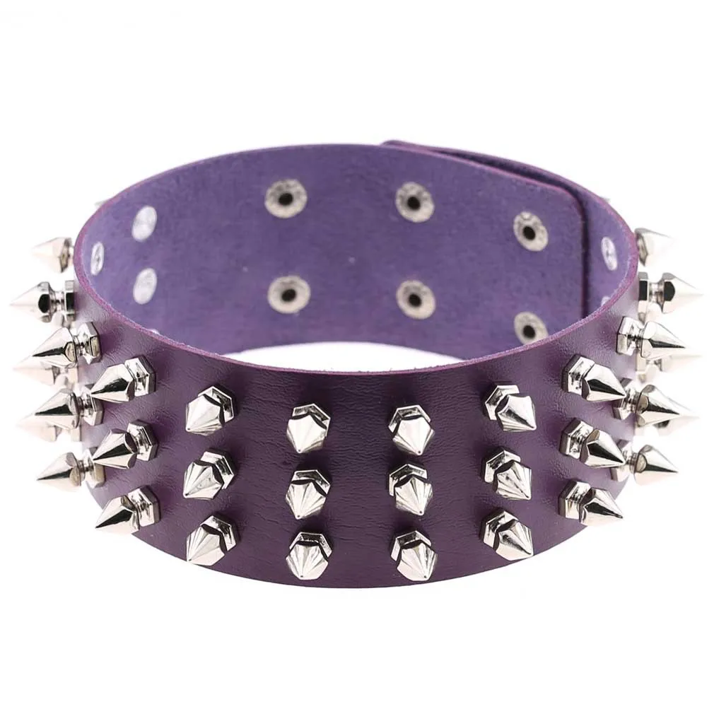 Панк фиолетовый искусственная кожа с заклепками воротник женское ожерелье удушение нержавеющая сталь серебряный цвет цепи связывание шеи готические украшения