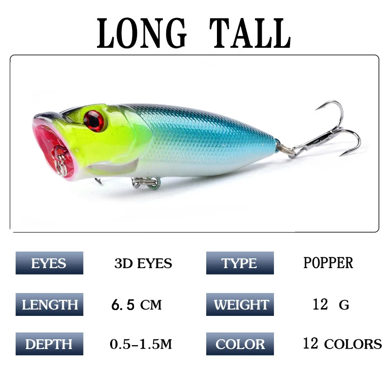 Лидер продаж, 1 шт., рыболовные приманки 6,5 см12 г, топвотер, Поппер, приманка 12 цветов, жесткая приманка, Искусственные воблеры, пластиковые рыболовные снасти с крючком 6 #