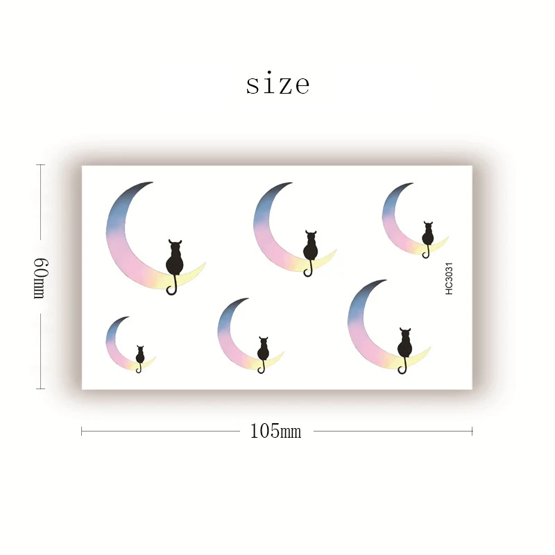 Водостойкая Временная тату-наклейка, цвет луна, Черный кот, маленький боди-арт, искусственная тату флэш-тату, ухо, запястье, нога для мужчин и женщин