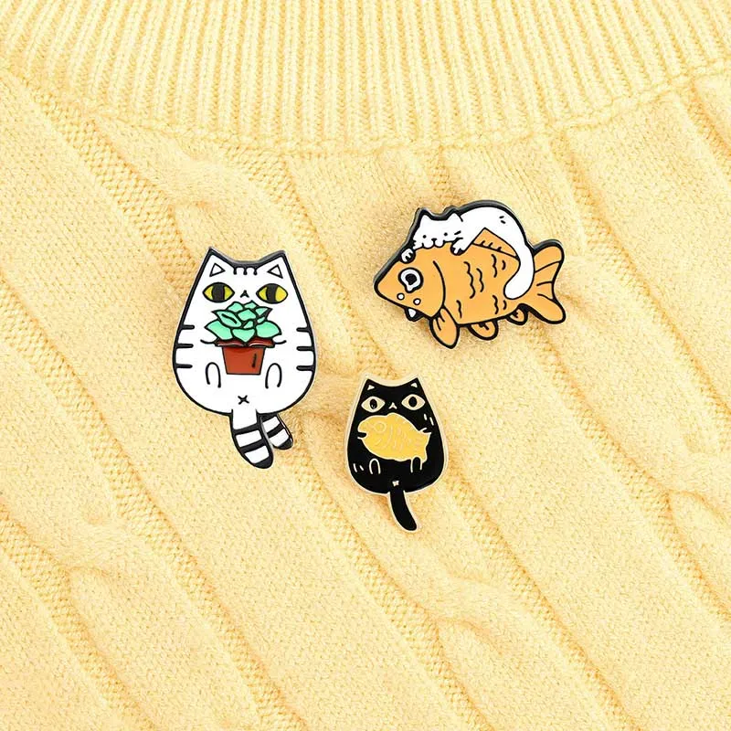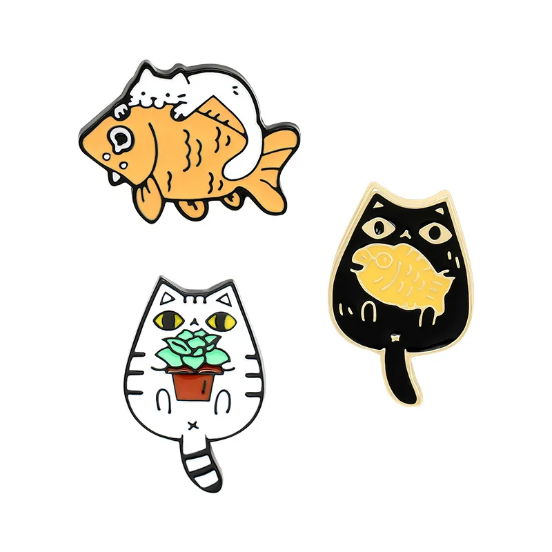 Эмалированные значки на булавке в виде милых кошек, золотых рыбок, рюкзака, сумки, рюкзака, аксессуаров для друзей