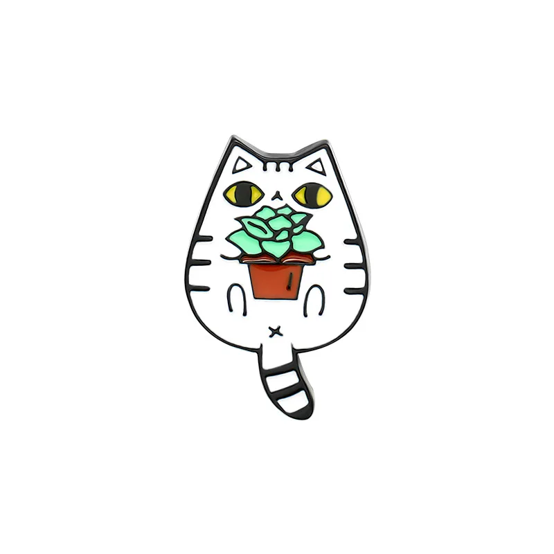 Мультфильм ЧерныйБелый Кот в горшке Эмаль Булавка желтая брошь с ры...