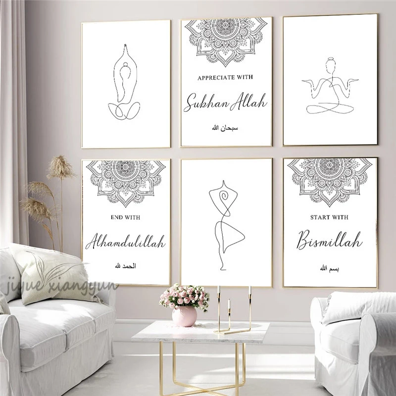 Черно-белые линии Йога поза тела Бохо цветочный постер холст живопись современный минималистичный настенный художественный принт Декор для дома гостиной