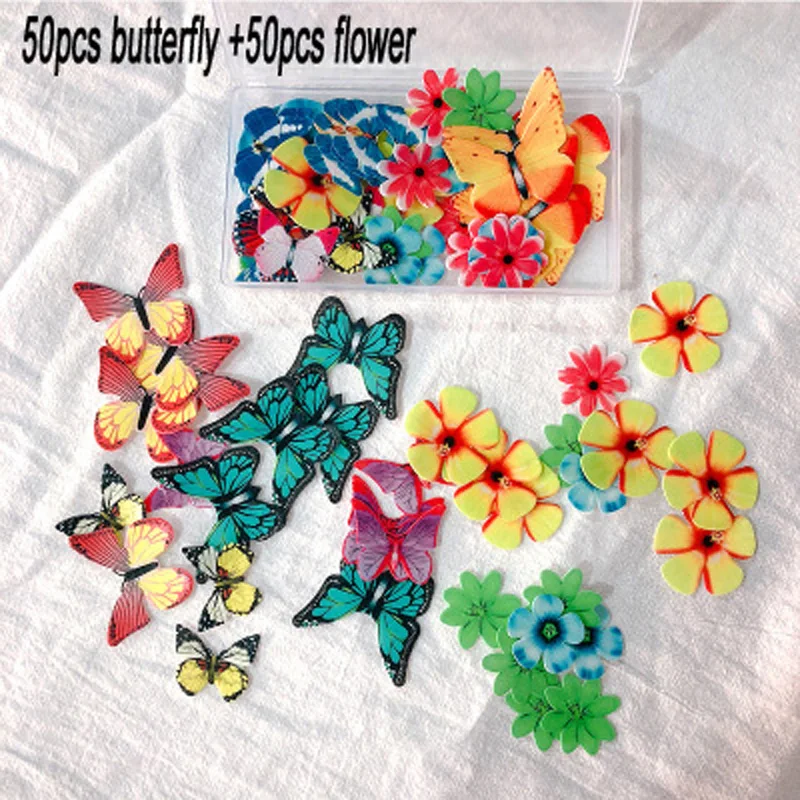 100 шт смешанные цветы бабочки съедобные клейкие вафли рисовая бумага торт кекс топперы торт украшение пирог на день рождения или свадьбу инструмент