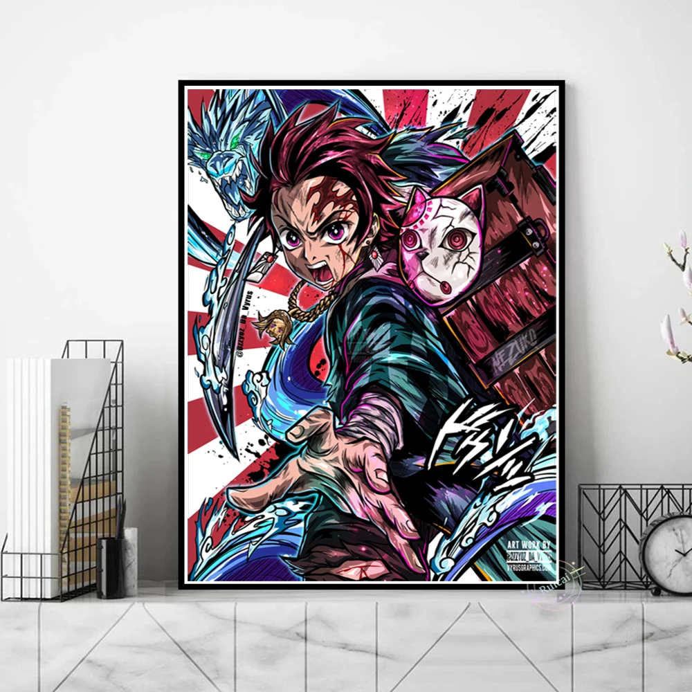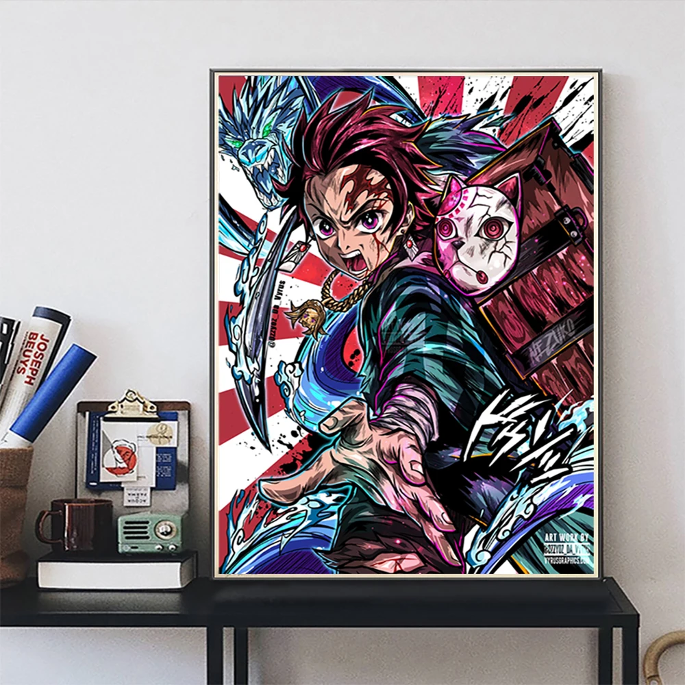 Плакаты и принты японского аниме, настенное искусство, Картина на х...