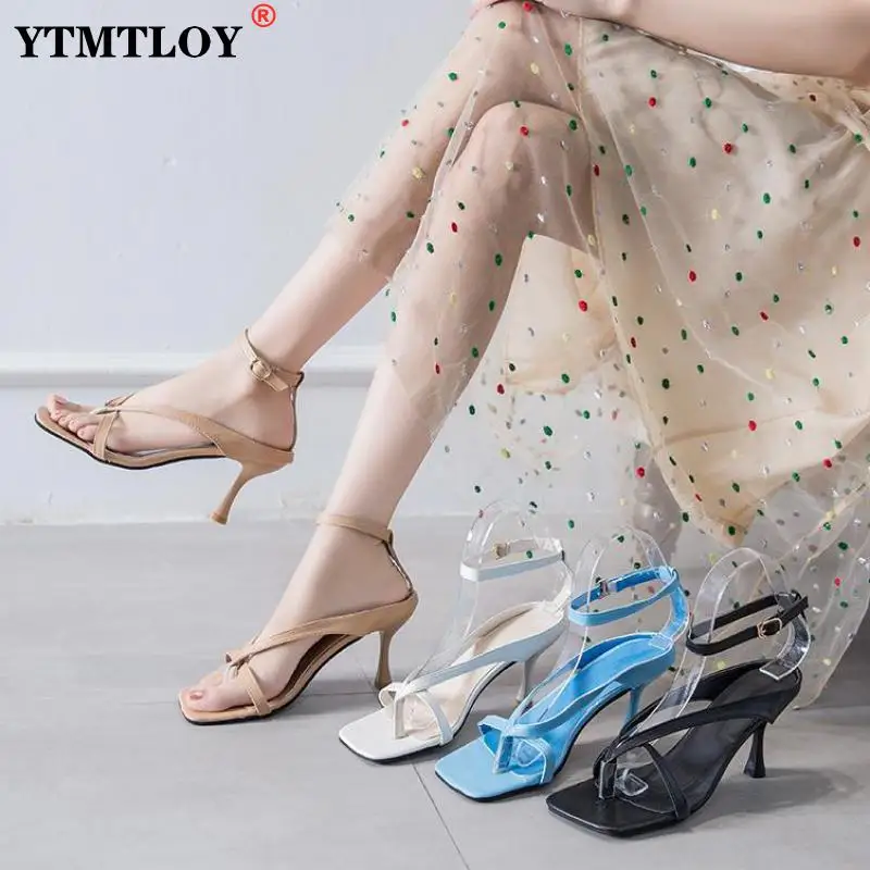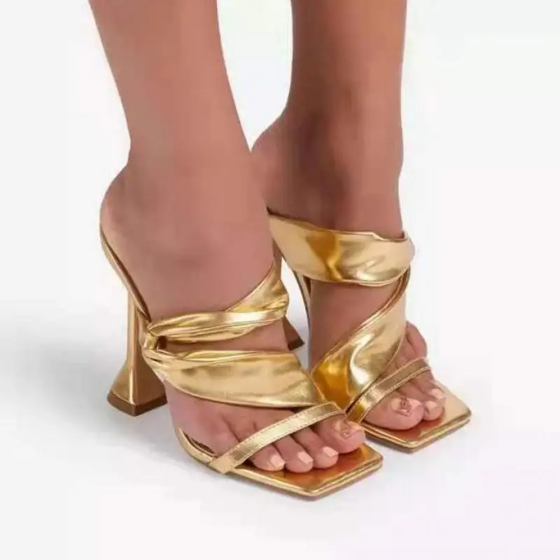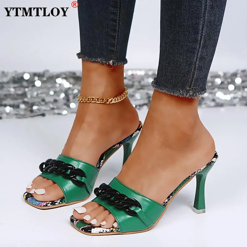 Сандалии-гладиаторы женские с цепочкой, элегантные босоножки на тонком высоком каблуке, квадратный носок, пикантная летняя уличная пляжная обувь вечерние