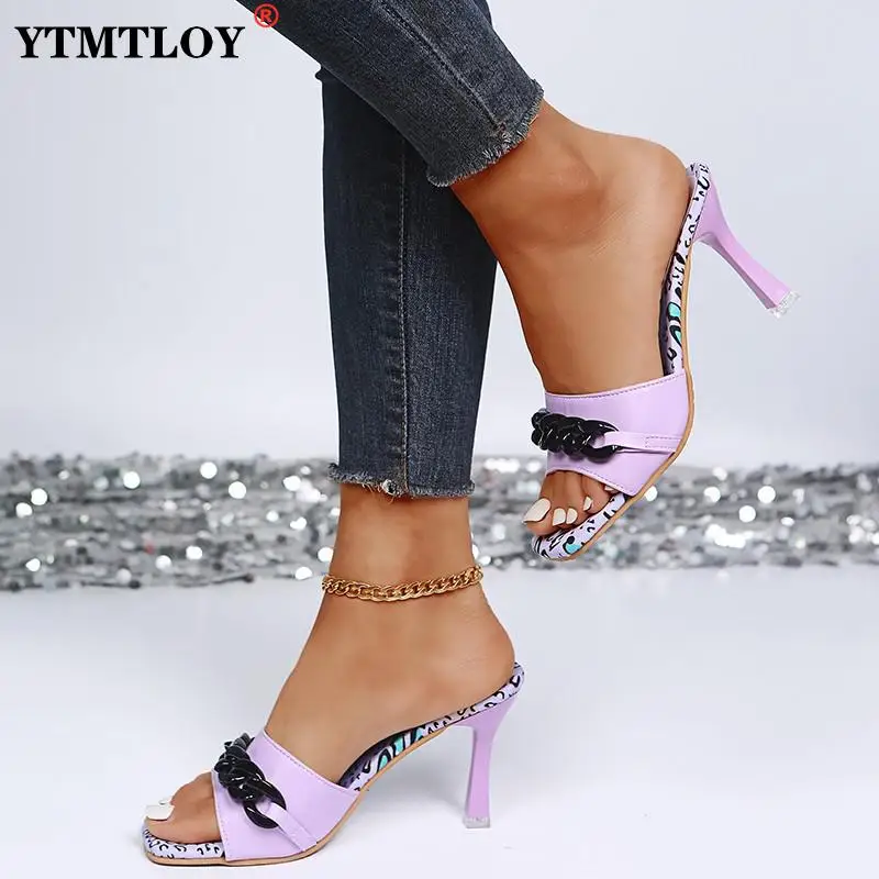 Женские блестящие мюли на металлической цепочке, летние модные повс...