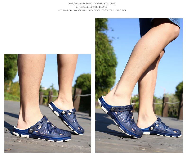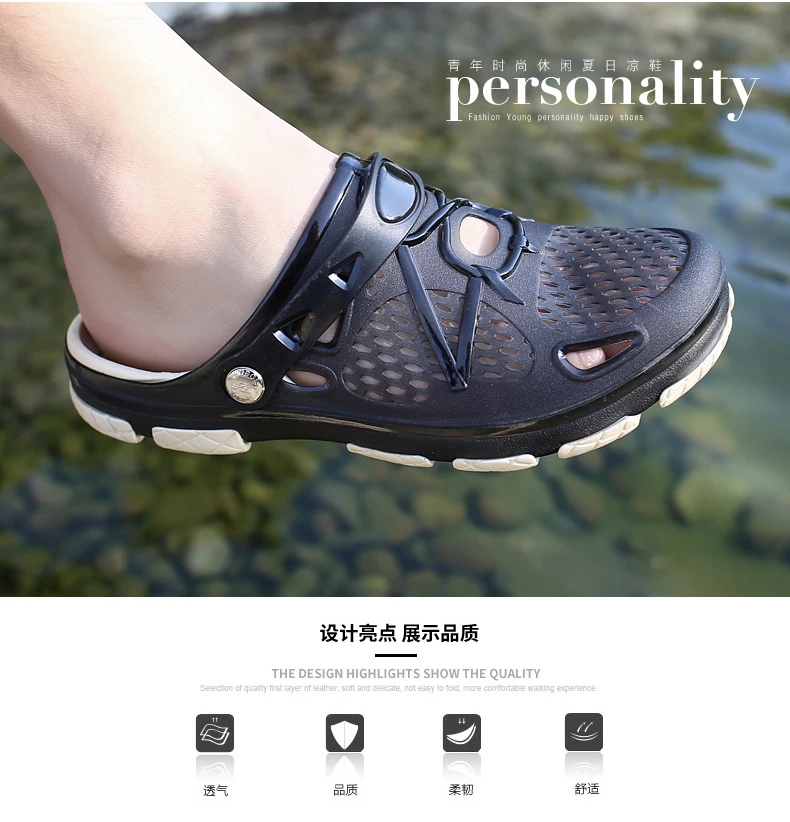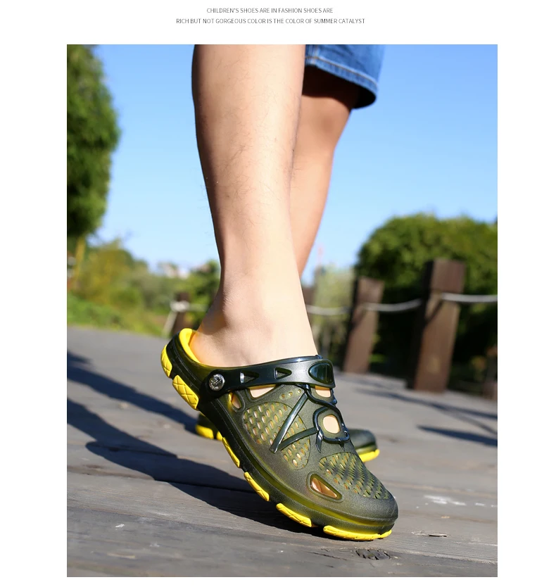 Мужские туфли с мягкой подошвой, Резиновые Садовые Кроксы, без каблука, тапки, для пляжа, Нескользящие, с дырками, черные, на осень