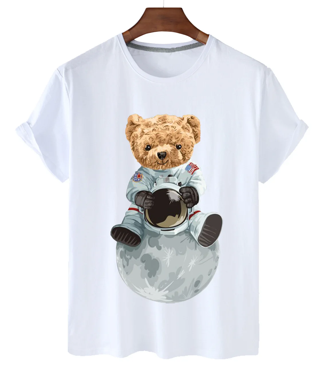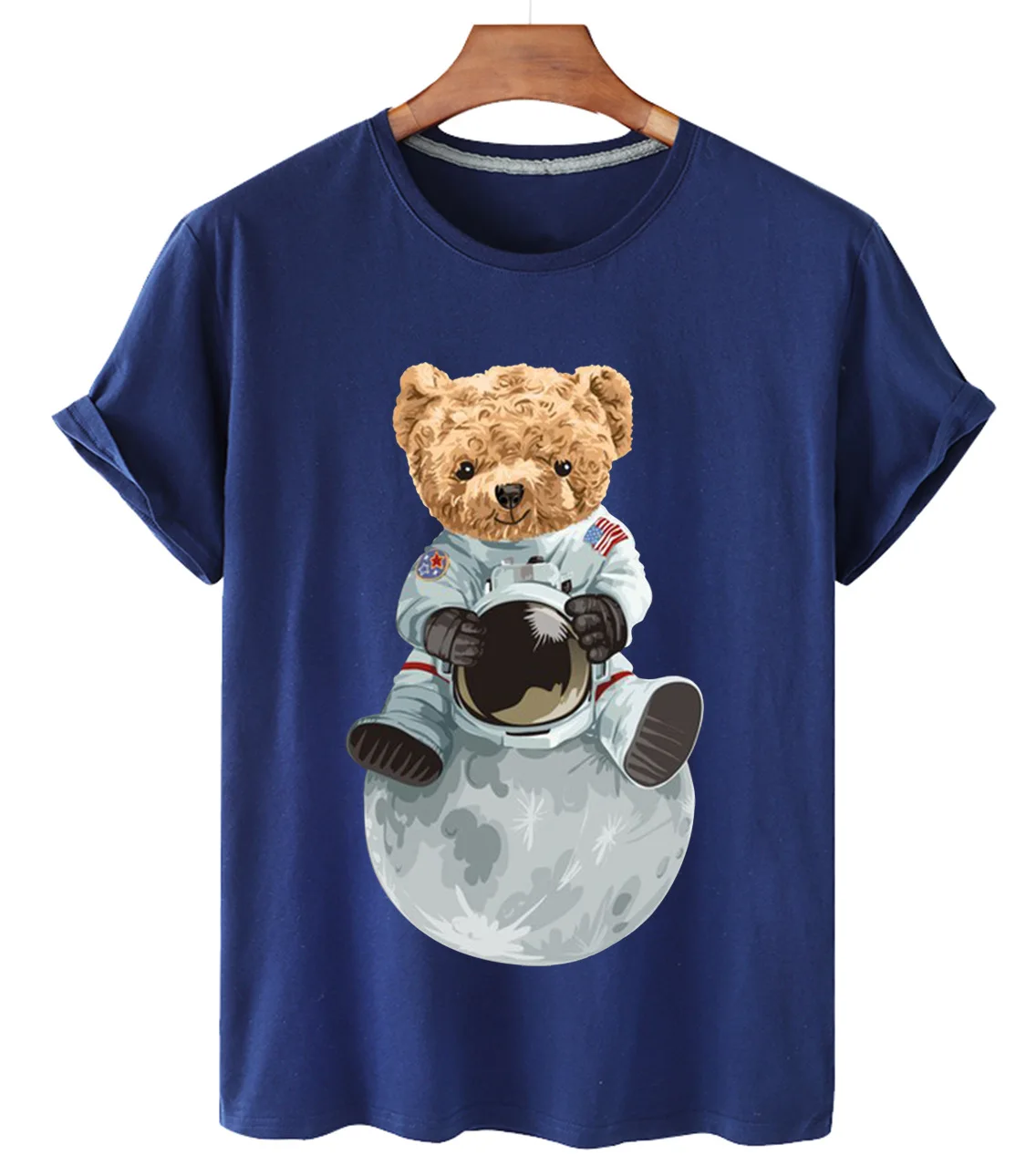 Футболка с коротким рукавом из 100% хлопка, с изображением космического медведя, женская, мужская и женская, уличная футболка большого размера с коротким рукавом и 3D-принтом