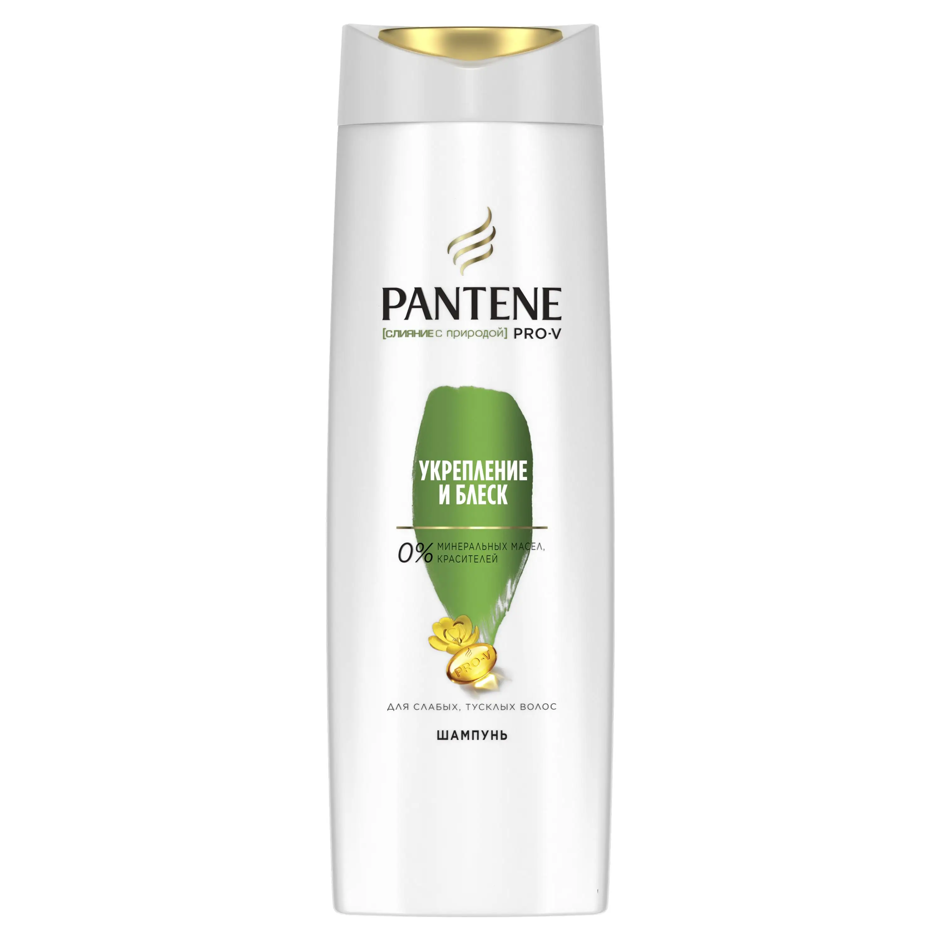 Шампунь Pantene Pro-V «Укрепление и блеск» с комплексом гуара мягко очищает, заряжает волосы активными питательными веществами Pro-V, укрепляя и придавая им блеск. Улучшает структуру поверхности волос от корней до самых кончиков. Придает волосам здоровый вид.