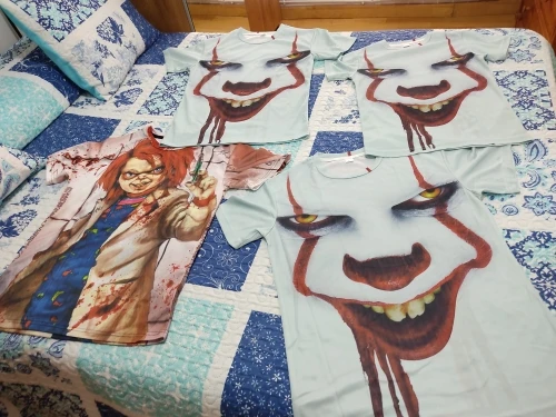 Вечерние ская футболка с коротким рукавом, принтом страшного клоуна