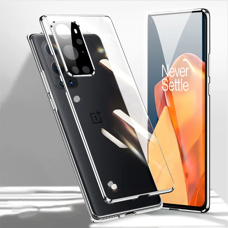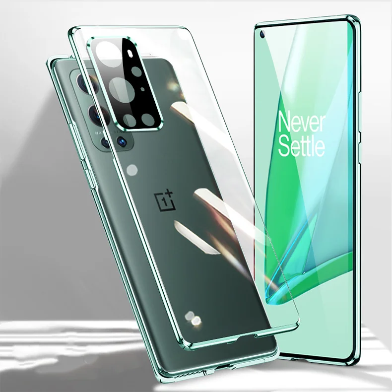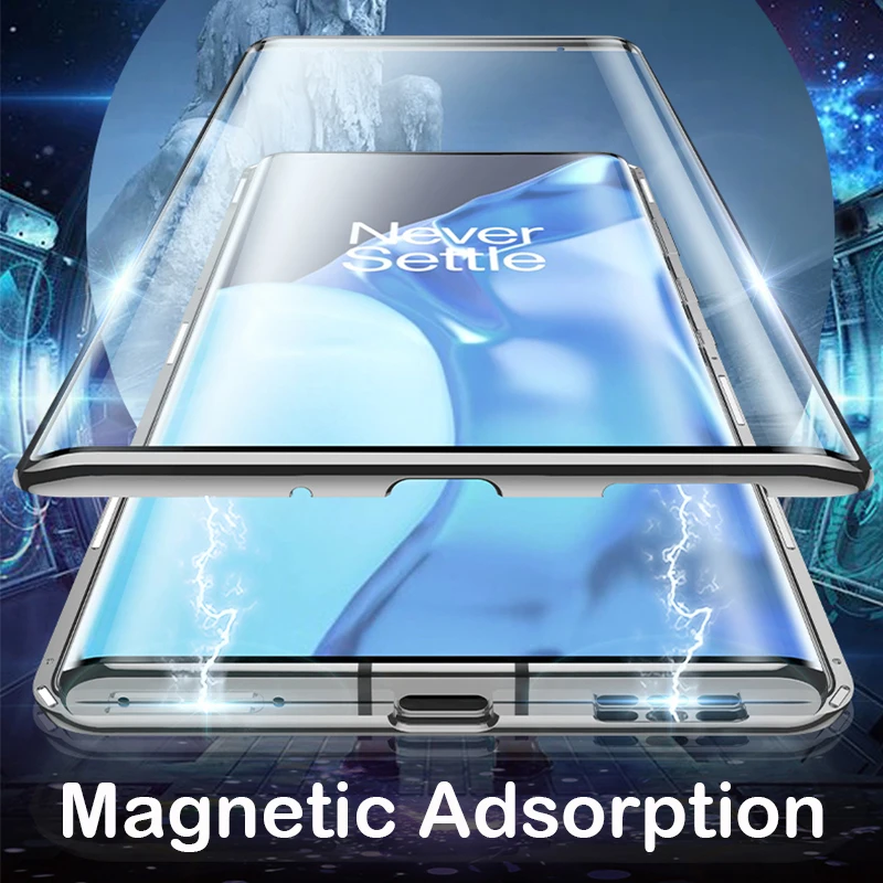 Полностью Магнитный чехол 360 градусов для Oneplus 9 Pro, защитный чехол для объектива камеры, стеклянная крышка, алюминиевый металлический бампер для Oneplus 8Pro 8t, чехол