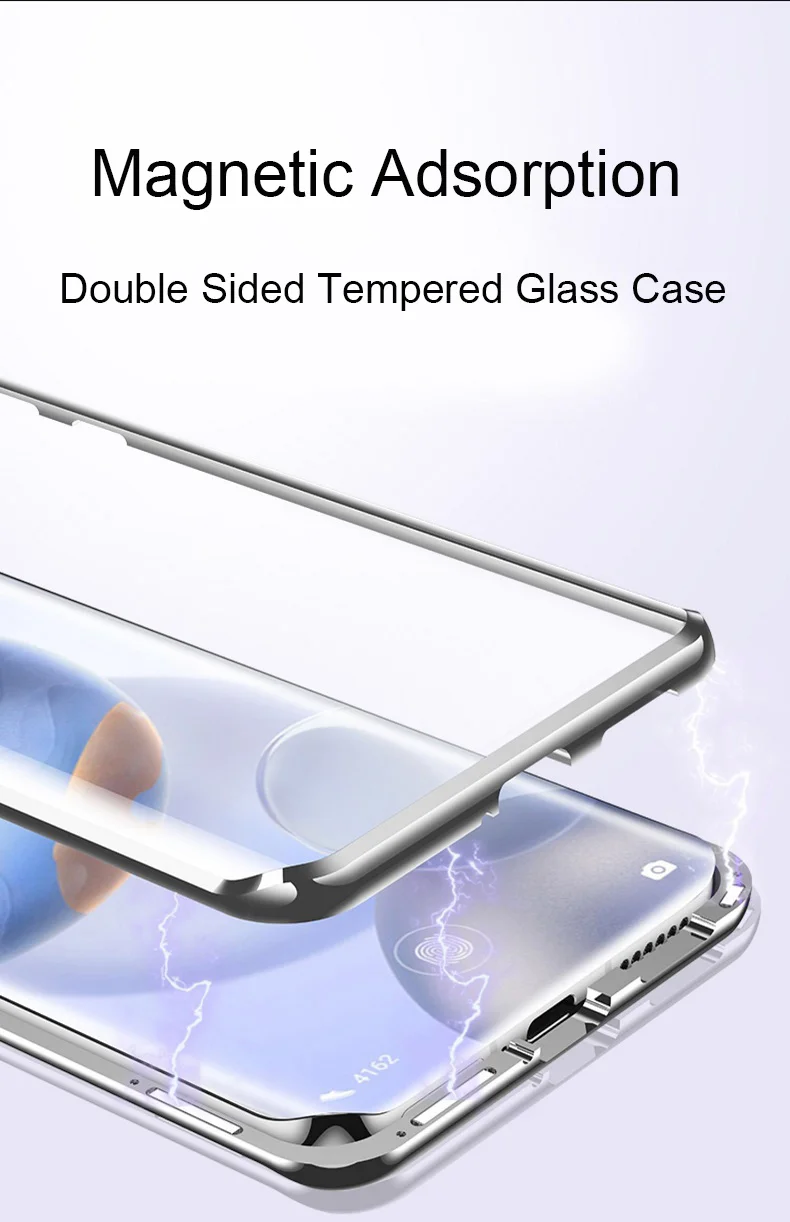 Материал: чехол с магнитной адсорбцией + двухсторонний чехол из закаленного стекла + защита для объектива камеры