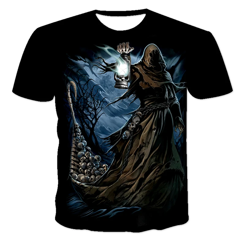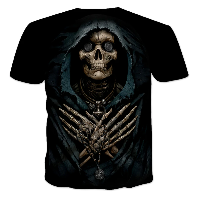 Одежда для подростков, новинка 2021, мужская летняя футболка с коротким рукавом и принтом черепа, Повседневная дышащая забавная футболка с 3D-принтом