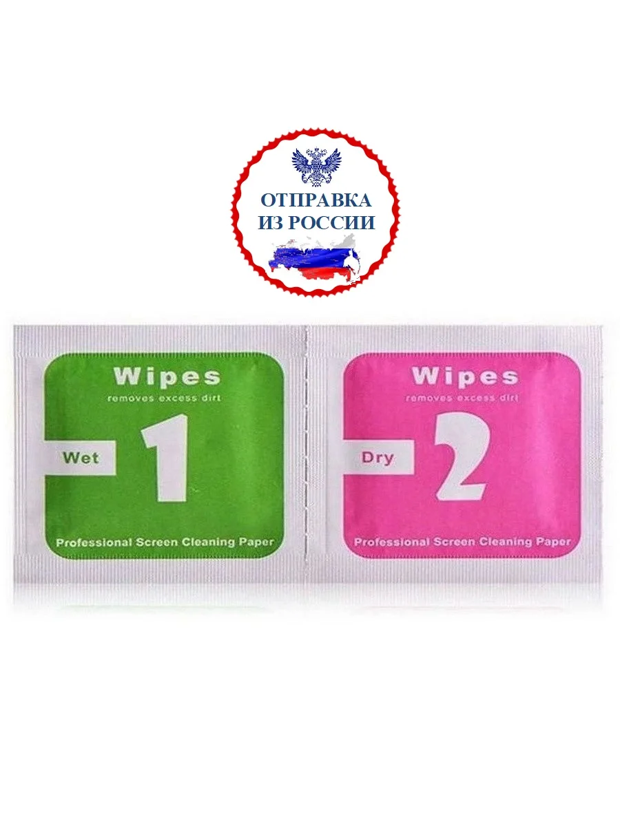 2 штуки: 2 защитных стекла, 2 стикера для удаления пыли, 2 пары влажных салфеток