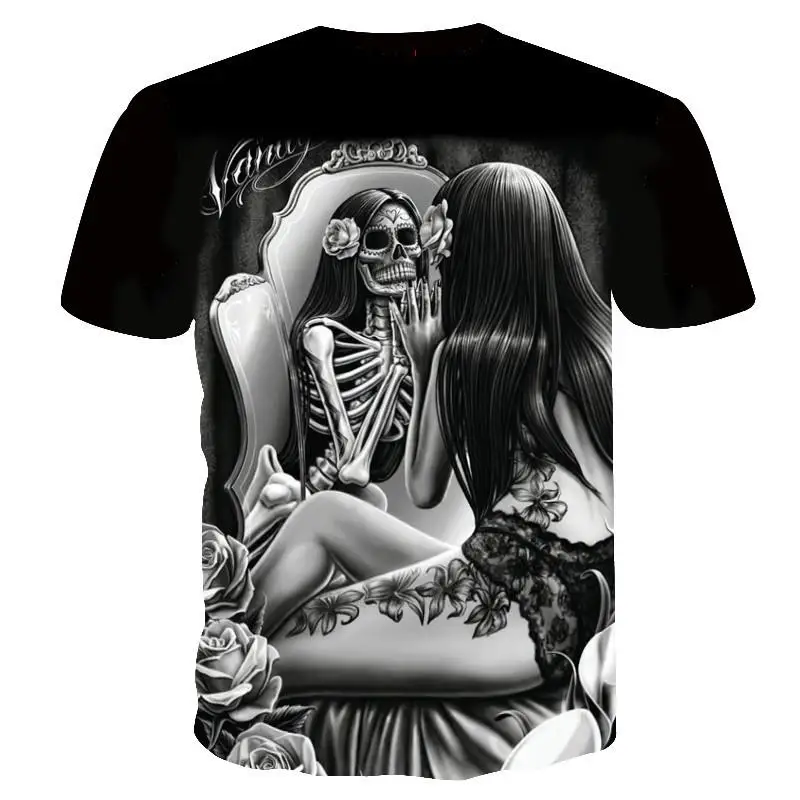 Футболка мужская с принтом черепа и покера, повседневная тенниска с коротким рукавом, дизайнерская майка черного цвета, лето с 3d рисунком