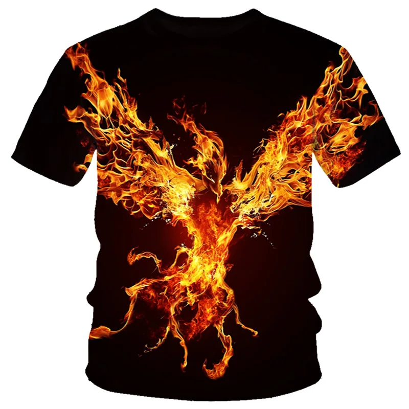Новая футболка с рисунком пламени, Мужская футболка с рисунком Феникса и орла, забавная футболка с рисунком в стиле Харадзюку, Повседневная живая футболка