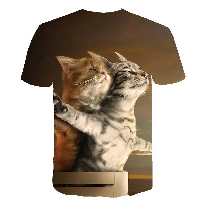 Футболка Мужскаяженская с 3d принтом, крутая рубашка с двумя кошкам...