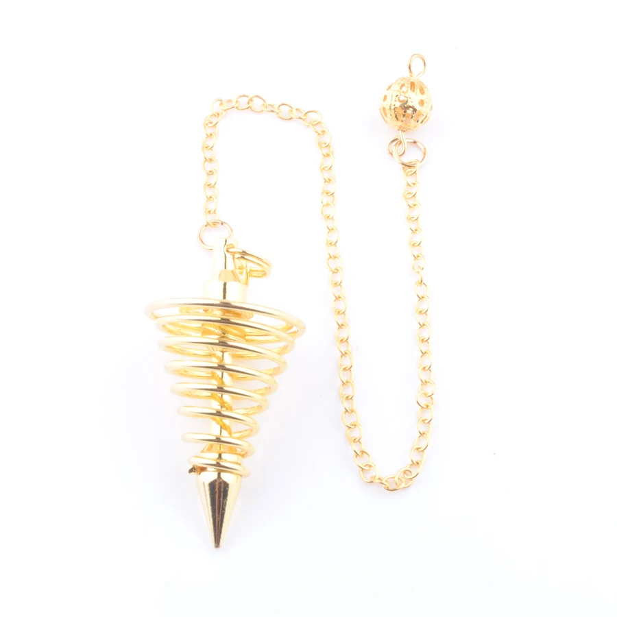 Металлические спиральные пирамидальные Подвески золотого цвета в форме конуса для дублирования гадания, духовный амулет, подвеска, часовой радиестественный подвесной ин4308