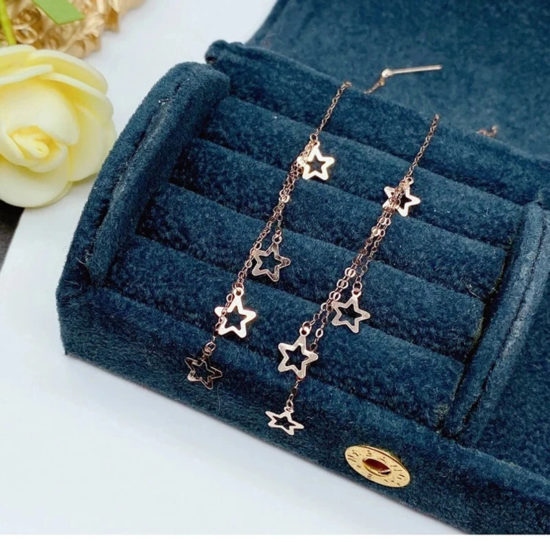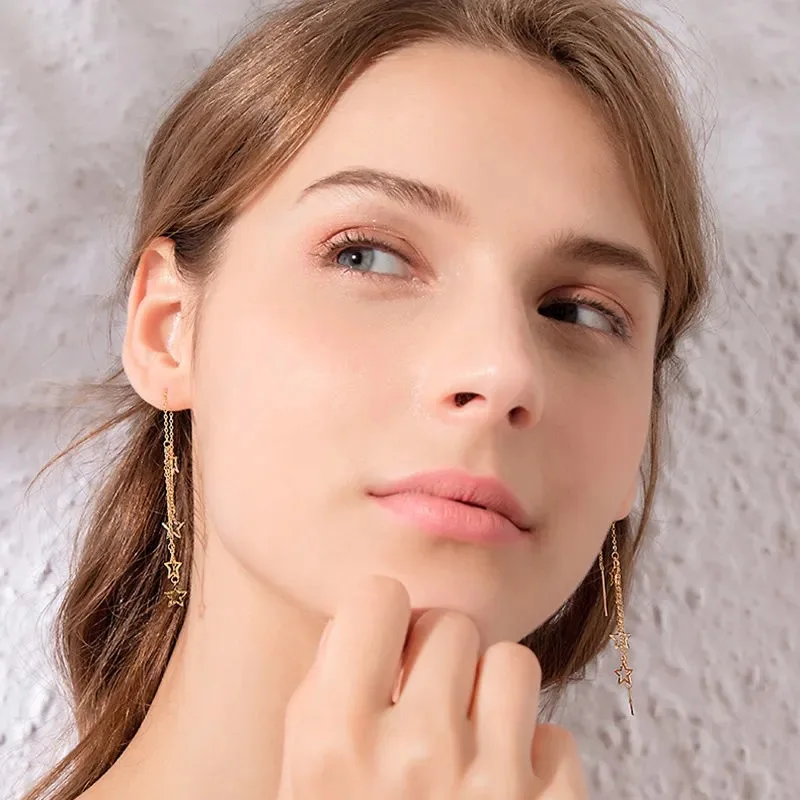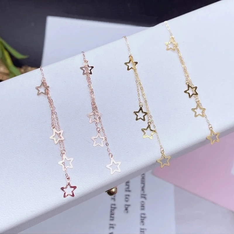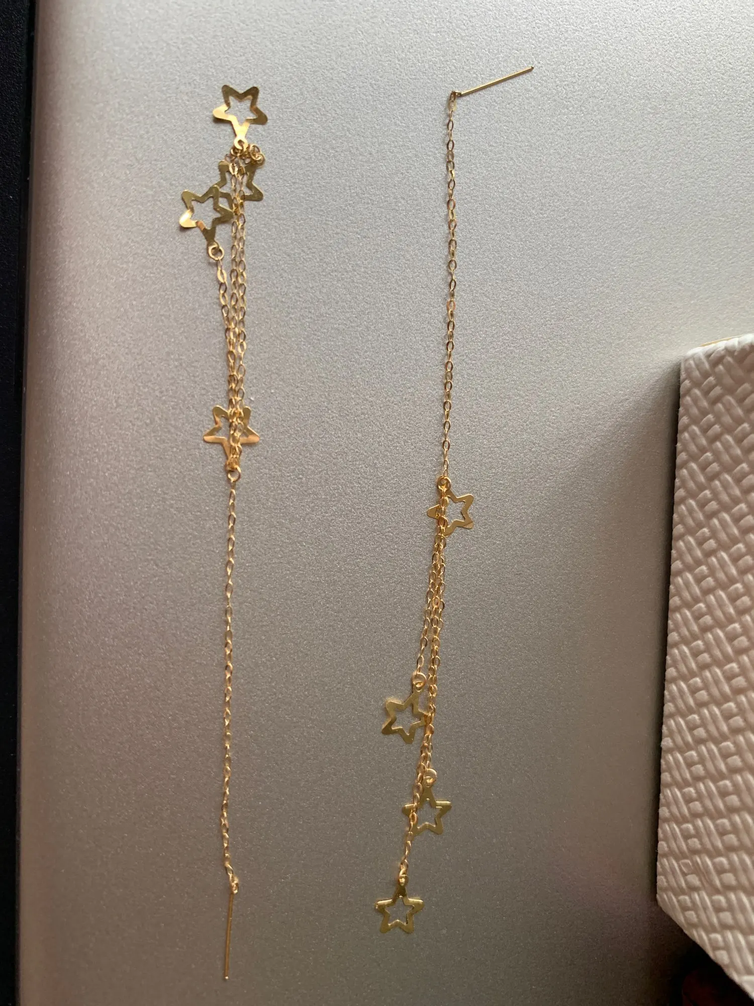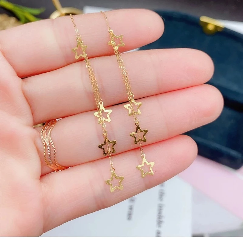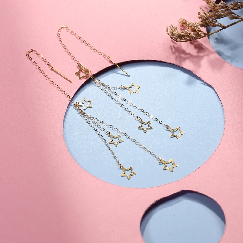 Серьги-подвески YUNLI из настоящего 18-каратного золота, простой дизайн с пятиконечной звездой, чистые серьги с кисточками AU750 для женщин, Изящные Ювелирные изделия, свадебный подарок