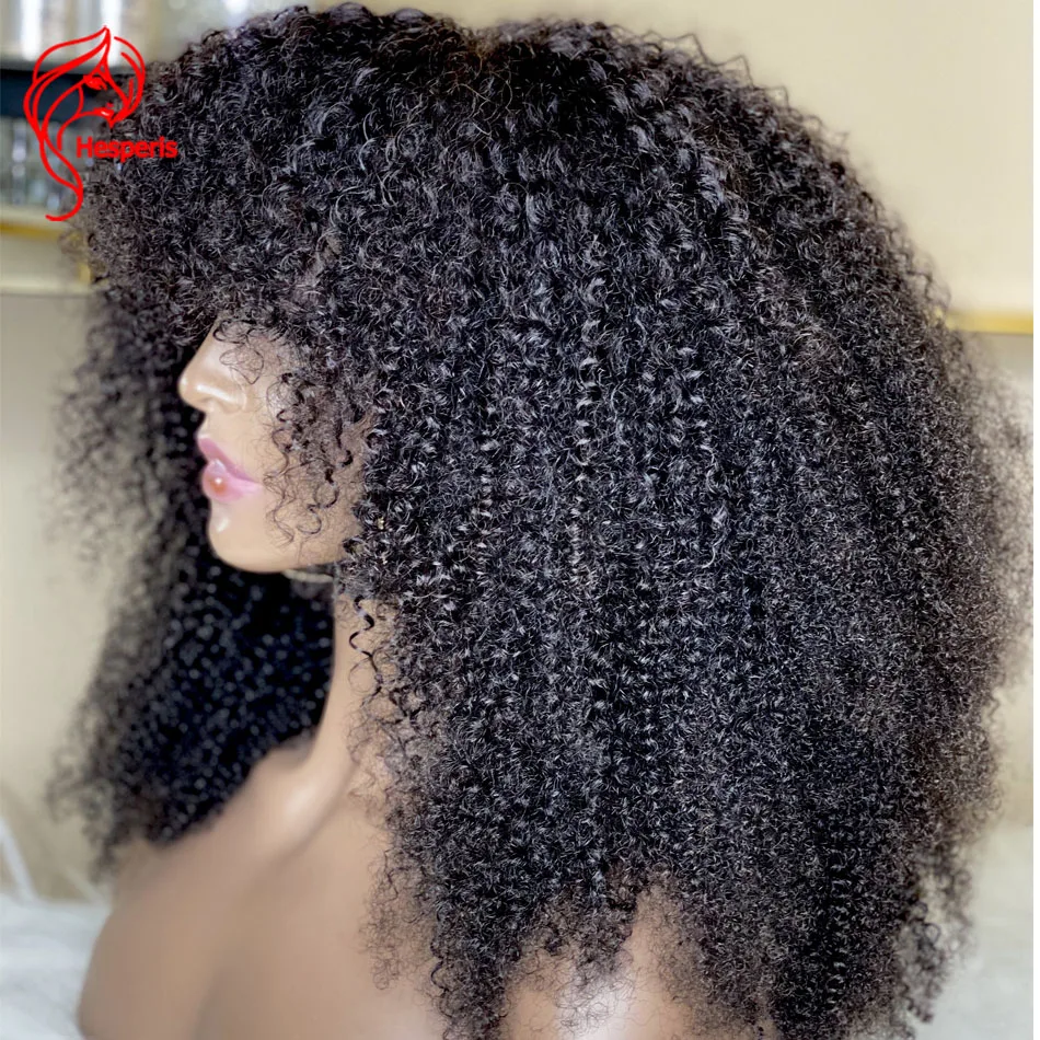 Парики из человеческих волос Hesperis, афро кудрявые вьющиеся парики с челкой, 250 плотность, Remy, бразильский, полностью машинная работа, парик для женщин