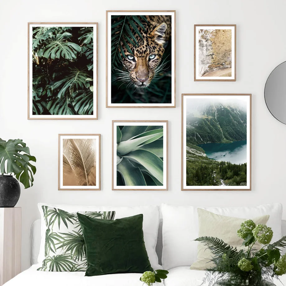 Настенная картина с изображением джунглей Лев гепарда тигра листья ...