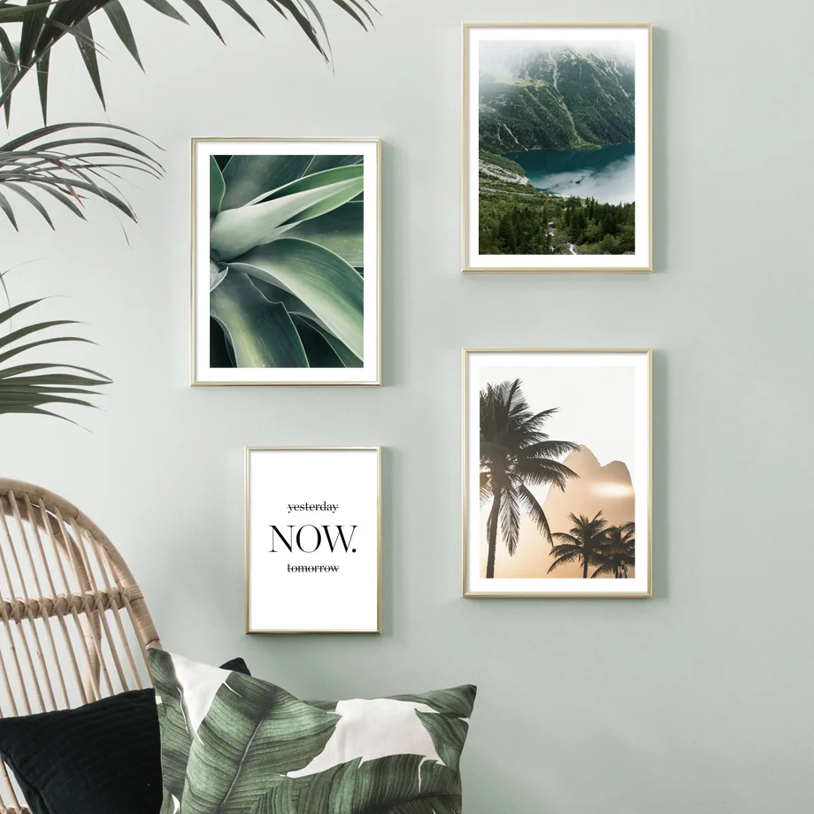 Настенная картина с изображением гор реки леса монстеры кактуса рос...