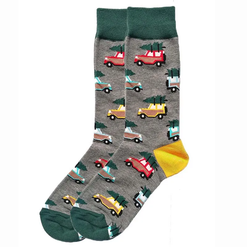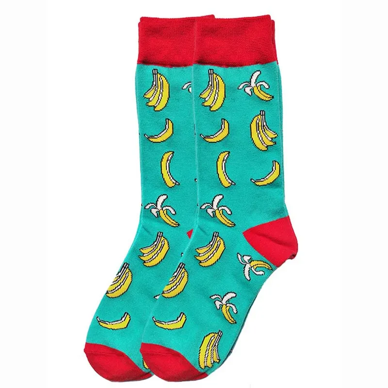Забавные мужские носки, новинка, хлопковые носки для учителей вишни, велосипеда, свадебные носки, банан, слон, смешные носки