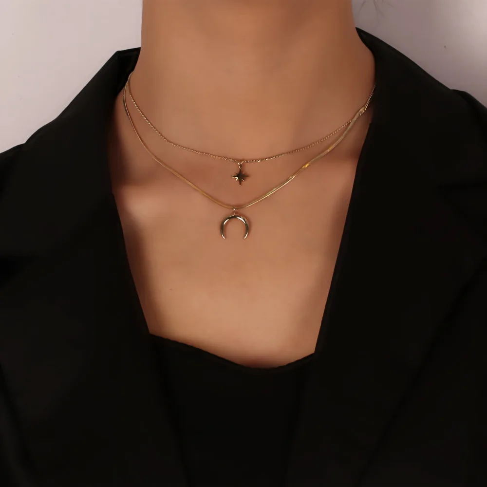 Ожерелье женское Двухслойное с подвеской в виде звезды и Луны из не...
