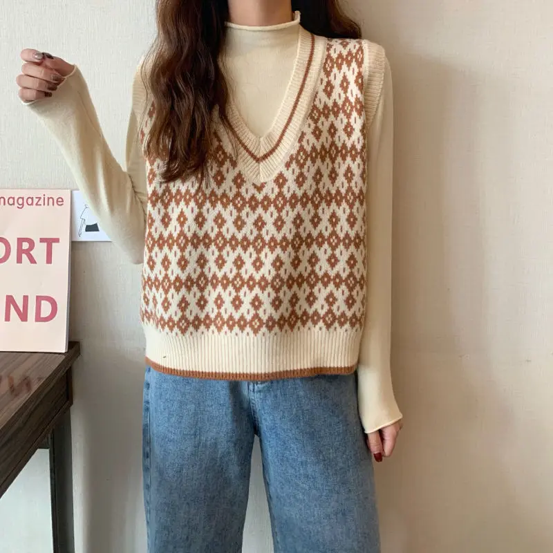 Женский свитер, жилет, Осенний вязаный жилет с узором, Женский Свободный жилет без рукавов с V-образным вырезом