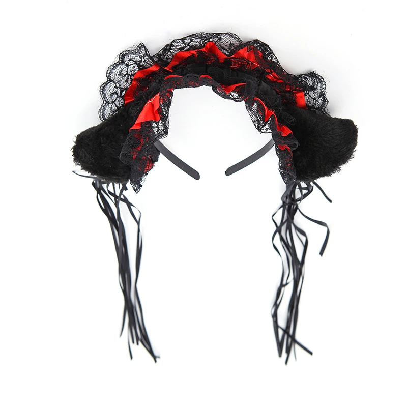 Обруч для волос Женский, кружевной, с оборками, в готическом стиле, с кошачьими ушками, колокольчик с лентой