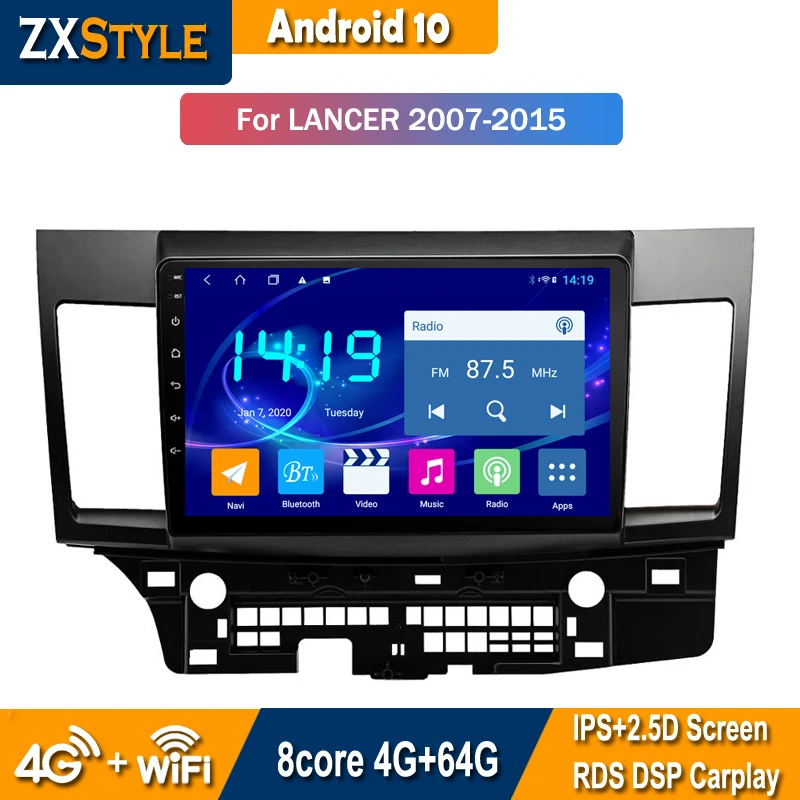 Автомобильный DVD-плеер IPS 4G + 64G Android 10 для Mitsubishi Lancer 2007-2015, мультимедийное радио, GPS-навигация