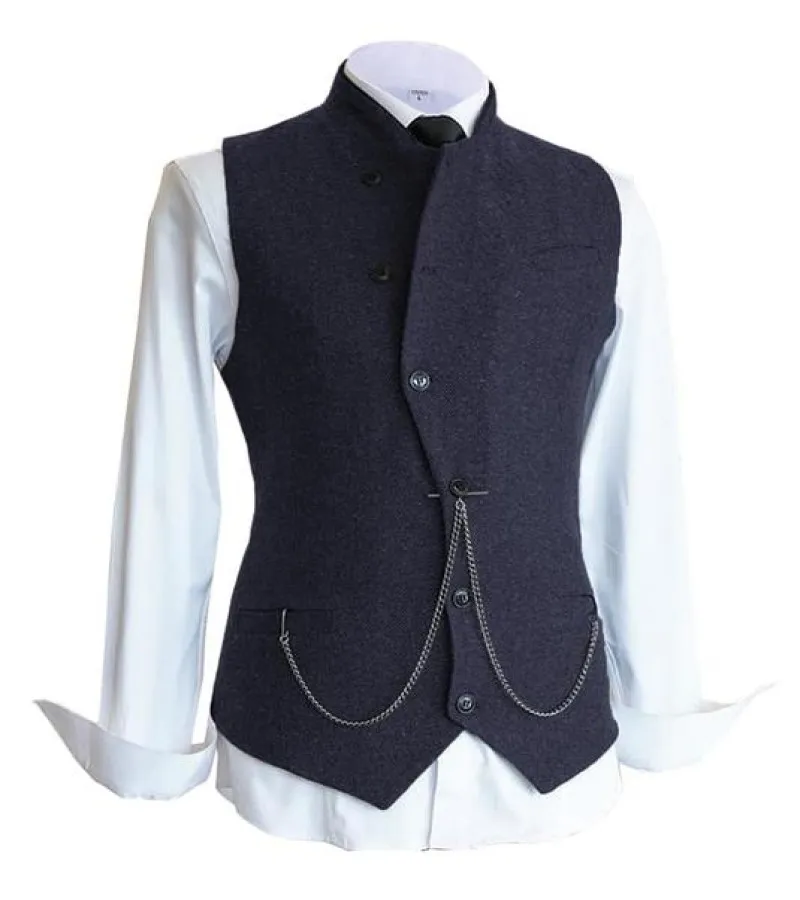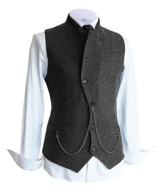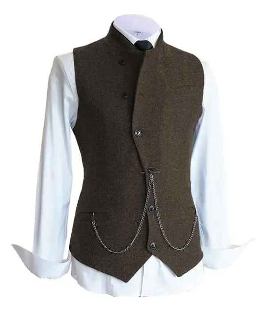 Мужской костюм жилет шерстяное твидовое смешанные елочка, деловые, повседневные, приталенные, одежда шафера для Свадебная вечеринка (без цепи)