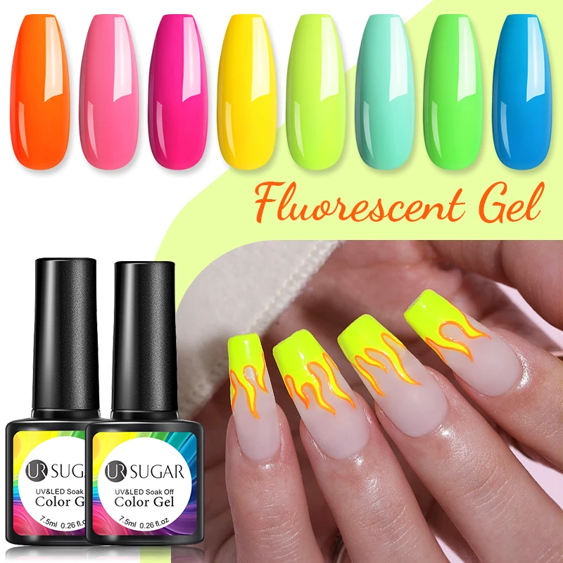 Флуоресцентные гель-лаки UR SUGAR 7,5 мл гибридные полуперманентные стандартные маникюрные УФ светодиодный светодиоды требуют базового и топового геля для ногтевого дизайна