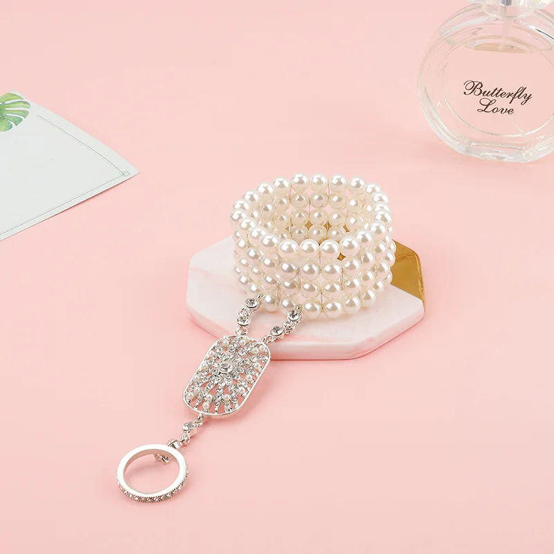 MIQIAO роскошный браслет-цепочка с серебряным покрытием и жемчугом, браслет-кольцо для женщин вечерние украшение для вечеринки, свадьбы, подарок другу
