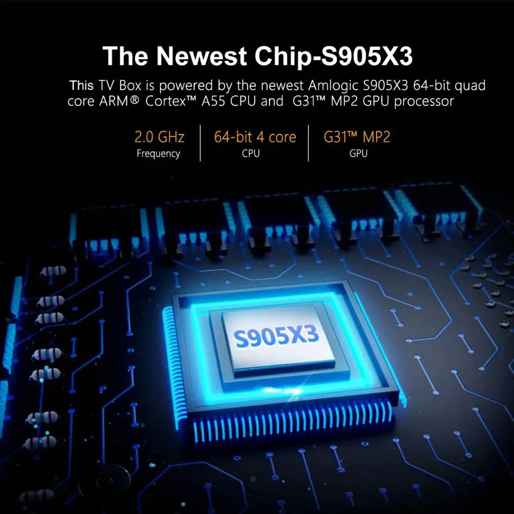 ✍Процессор: Amlogic S905X3 64-разрядный четырехъядерный процессор ARM® Cortex™Процессор A55