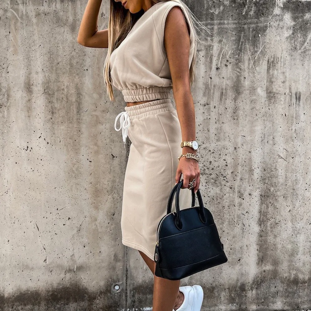 Костюм женский однотонный без рукавов, модная уличная одежда, Свободный Повседневный костюм из топа и юбки, комплект из двух предметов, 2021