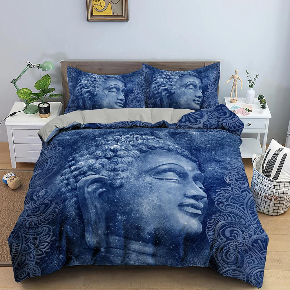 Комплект постельного белья из Мандала с Буддой микрофибры, размер Queen, экзотический, этнический, богемный, роскошный, одеяло из полиэстера пододеяльник