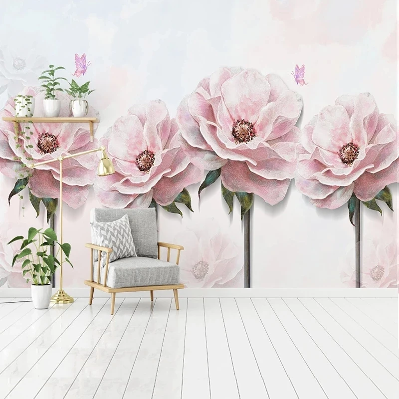 Самоклеящиеся 3D-обои на заказ, наклейки с рисунком розовых роз, бабочек, цветов, романтичные фрески для гостиной, спальни, домашний декор