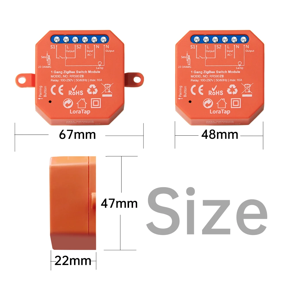 Компактное реле, подключил без каких либо нареканий. Работает с выключателями с фиксацией положения, с кнопочными не работает. На выключатель подаётся фаза на разъёме s2. На коробке 10А указали, а на корпусе реле 16А. Вскрывать не стал, чтобы посмотреть саму релюшку, боковые стенки корпуса довольно тонкие.