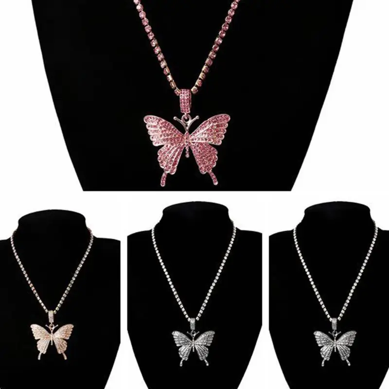 Сверкающее полностью сверкающее ожерелье с подвеской-бабочкой с кристаллами и кулоном-бабочкой из кубического циркония с объемным кулоном-бабочкой модные ювелирные изделия C1FC