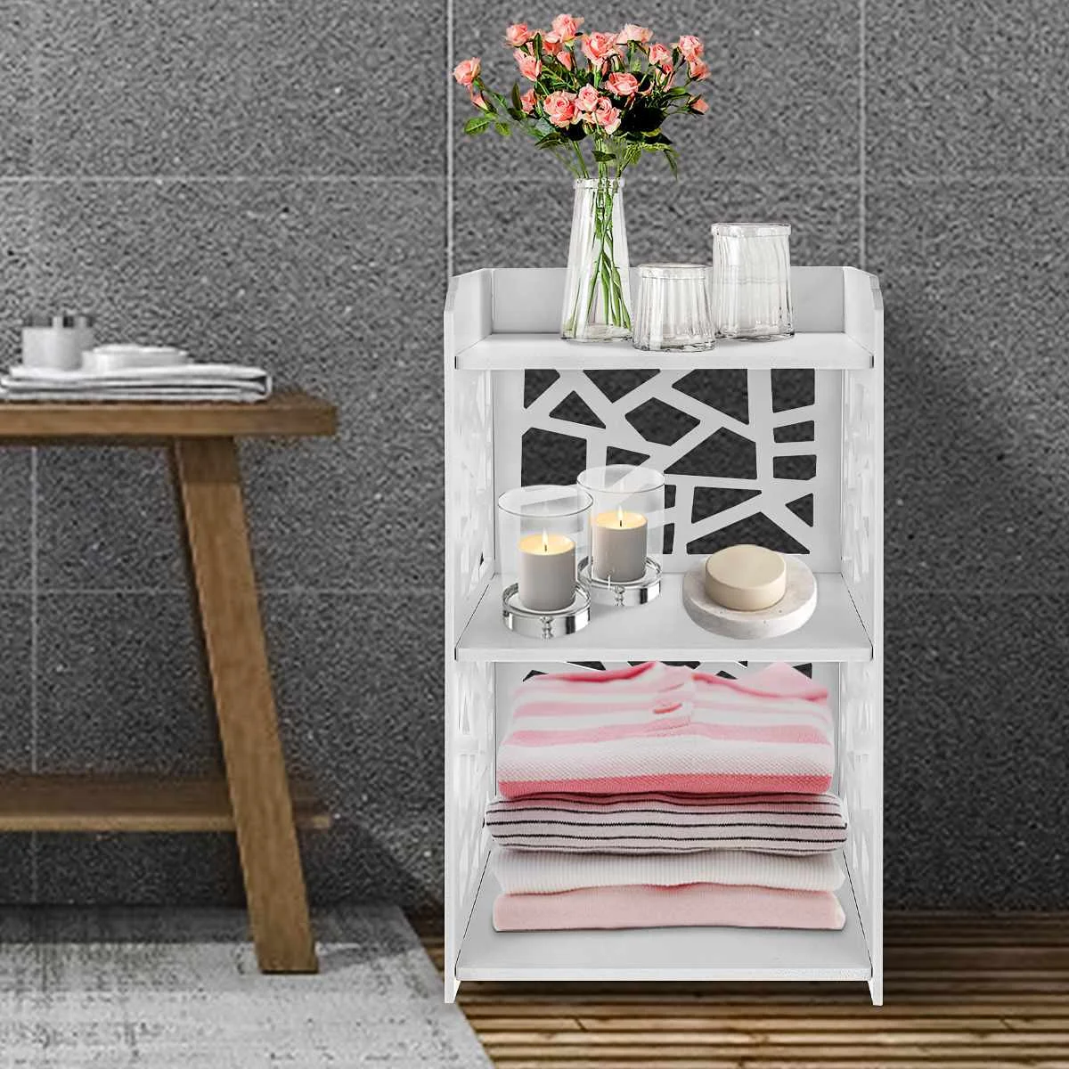 Особенности:1. Экологический материал: древесно-пластиковые композиты материал светильник и прочный не формальдегид Нулевое Загрязнение окружающей среды для здоровья.2. Простая сборка: простая сборка в течение 5-10 минут, водонепроницаемая.3. Водонепроницаемый и легко чистится: этот цвет шкафа белый, но вам не придется беспокоиться о его проблемах с уборкой, полка может быть вымыта непосредственно в воде, а затем вытереть.4. Многофункциональный органайзер для хранения: он может содержать тяжелые предметы, такие как жидкость для стирки, растения, бумажные полотенца для книг и другие принадлежности для ванной комнаты.