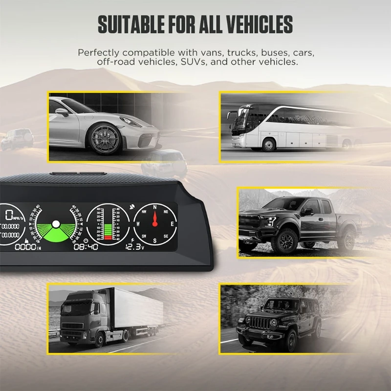 Умный GPS горизонтальный спидометр для вождения, полностью поддерживает Высокоточный Мониторинг скорости автомобиля, угла наклона/заплаты транспортного средства, состояния напряжения автомобильного аккумулятора и так далее, чтобы обеспечить безопасность вождения.Принимает цветной hd-жк-дисплей с высоким разрешением и регулирует яркость экрана с помощью чувствительности датчика на светильник.Точный дисплей угла наклона/заплаты транспортного средства изменяется, когда угол составляет более 40 °, сигнал тревоги, чтобы обеспечить вашу безопасность. И оповещение о усталости вождения после вождения в течение 4 часов.После подключения к источнику питания внутри будет подсветка, которая поможет вам точно увидеть чехол в ночной или темной ситуации.Широко подходит для автомобилей, грузовиков, фургонов, автобусов и других транспортных средств и подходит для самостоятельного вождения и внедорожников.Спецификация: