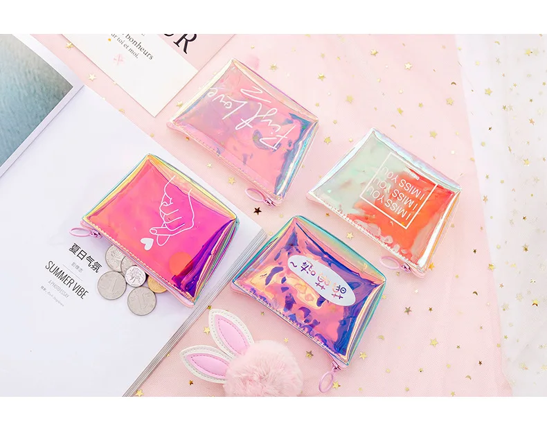 ПВХ кавайный кошелек, женские кошельки, монеты и карты, милое сердце, надпись, Детская молния, маленькие сумки для хранения монет, чехол
