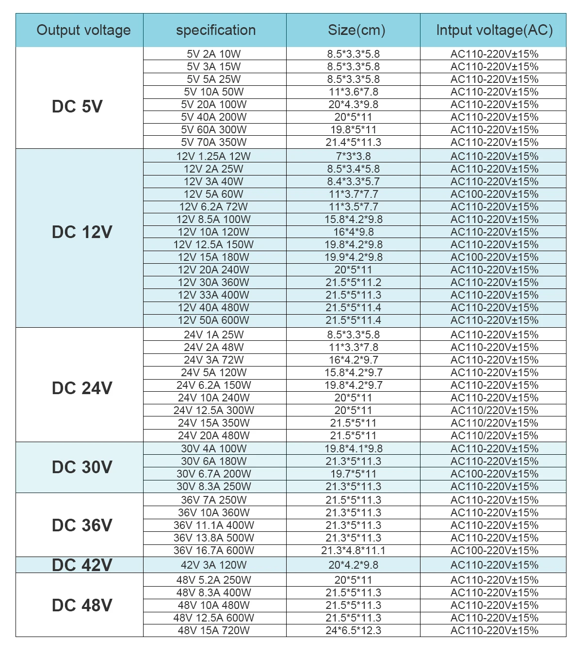 Общий Регулируемый трансформатор Импульсный источник питания 5v-12v-36v-48v 1A 5A 10A стабильное напряжение