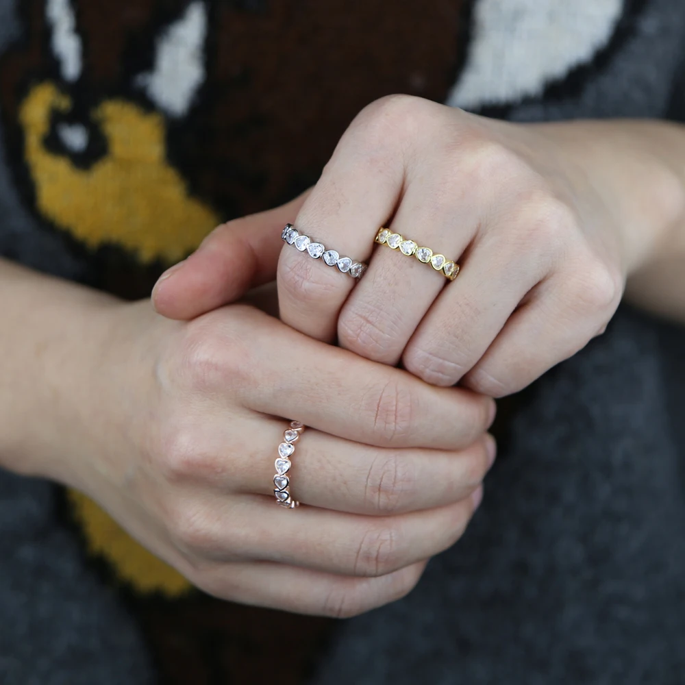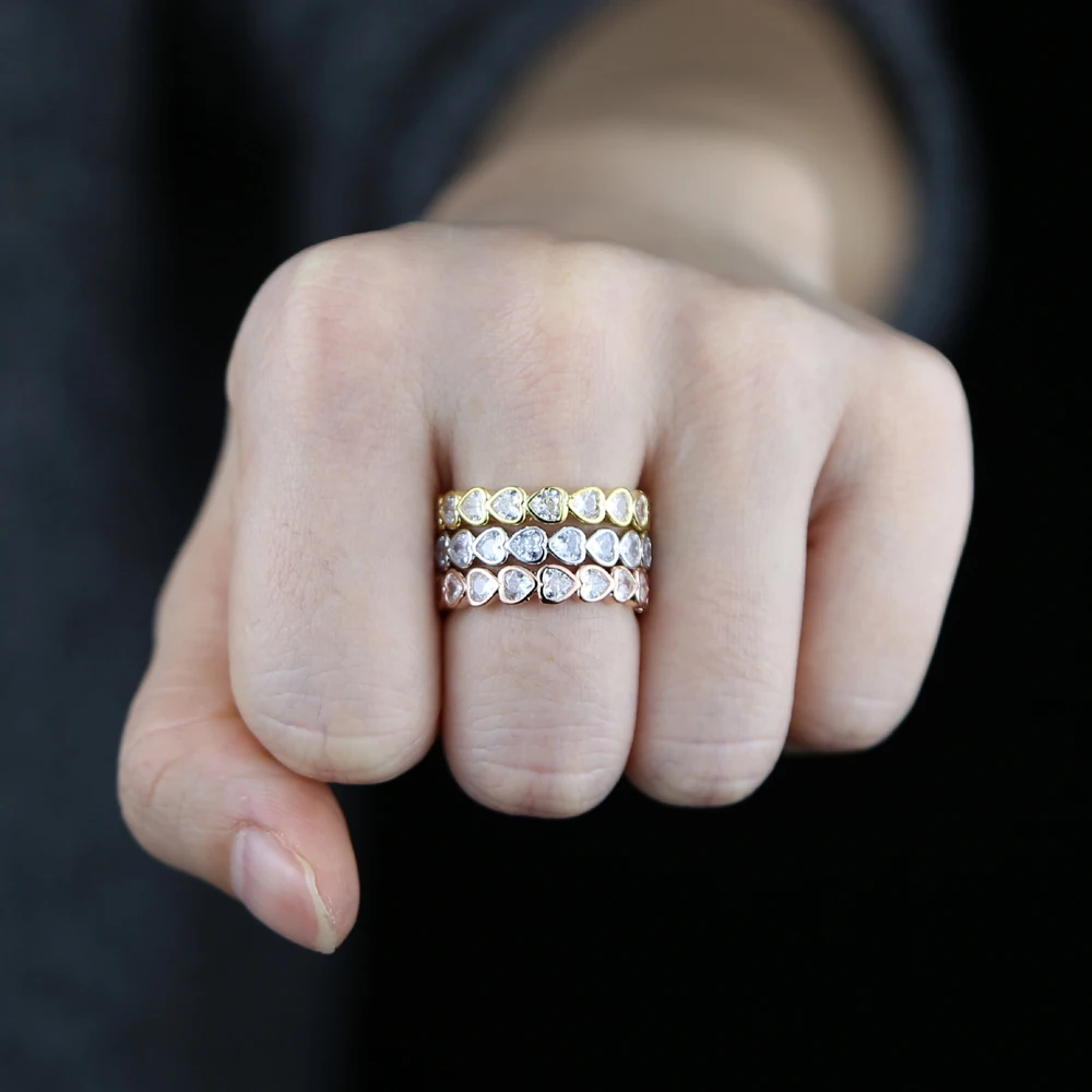 Позолоченное классическое модное кольцо в форме сердца для любимой девушки Топ качественное микро-паве прозрачное CZ Сверкающее обручальное кольцо на палец